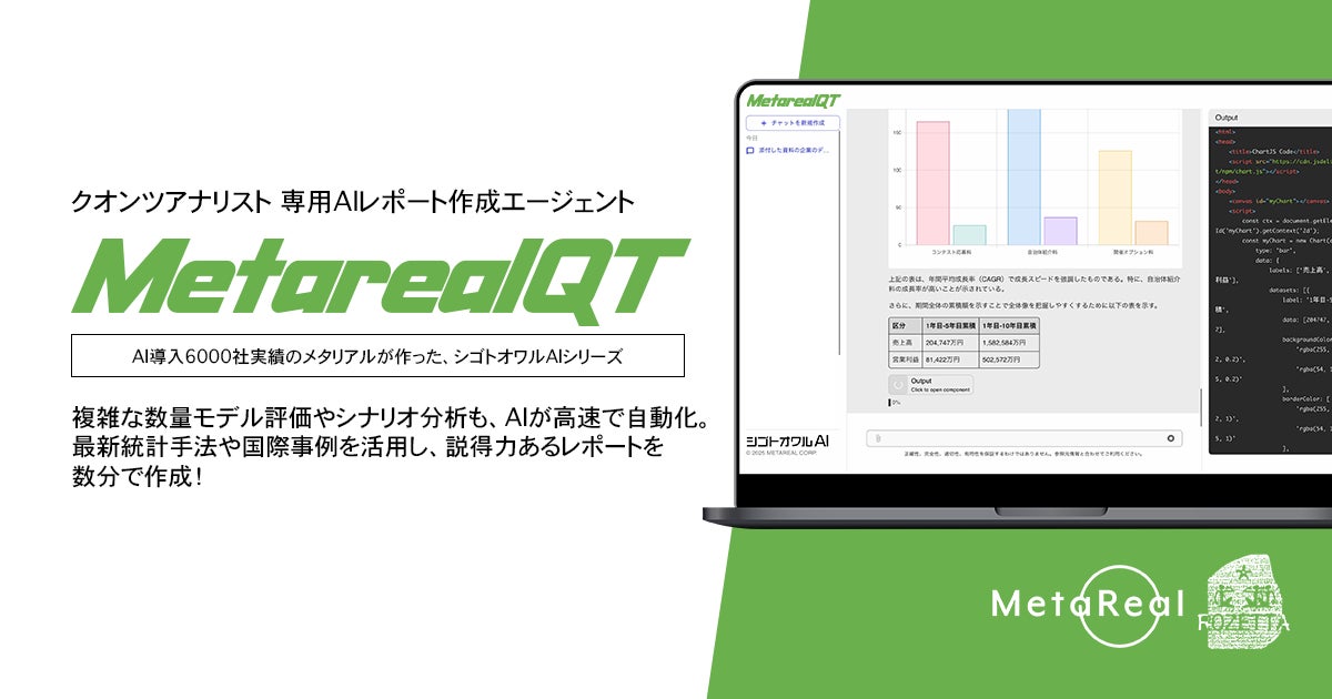 【メタリアル・グループ】数量モデル評価・シナリオ分析レポート作成AIエージェント「Metareal クワンティティヴ(Metareal QT)」6/9提供開始