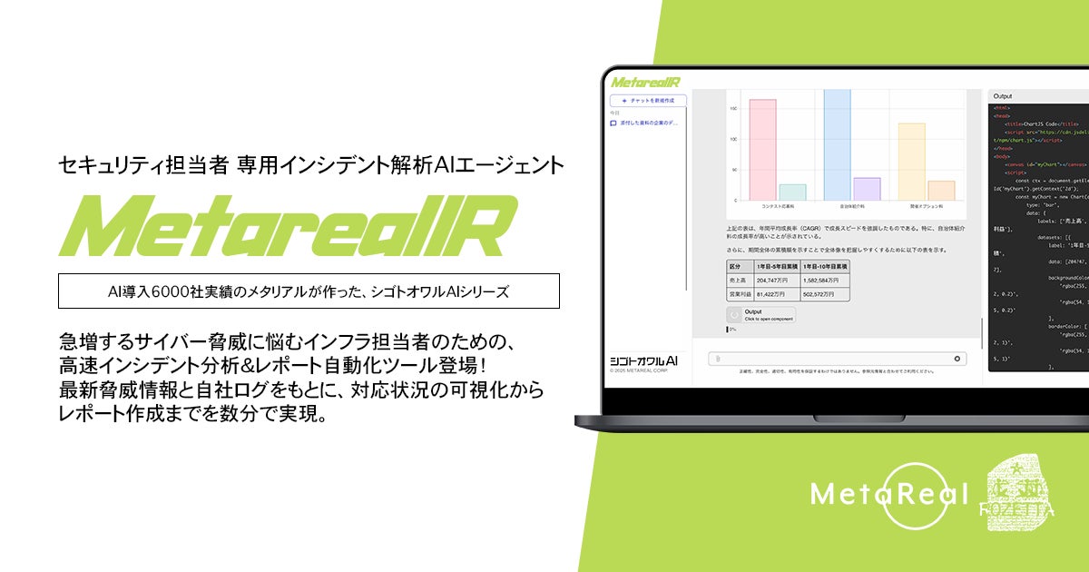 【メタリアル・グループ】セキュリティインシデント解析レポート作成AIエージェント「Metareal インシデントレスポンス(Metareal IR)」6/23提供開始