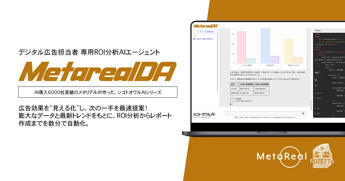 メタリアル・グループ、デジタル広告ROI分析AIエージェント「Metareal DA」の提供を開始